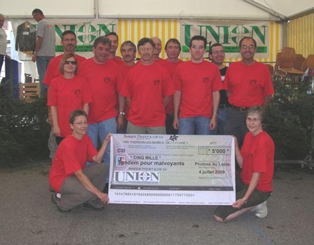 2009 photo remise d’un chèque de 5000 francs par l’Union Philanthropique lors de la fête des promos au Locle, juillet